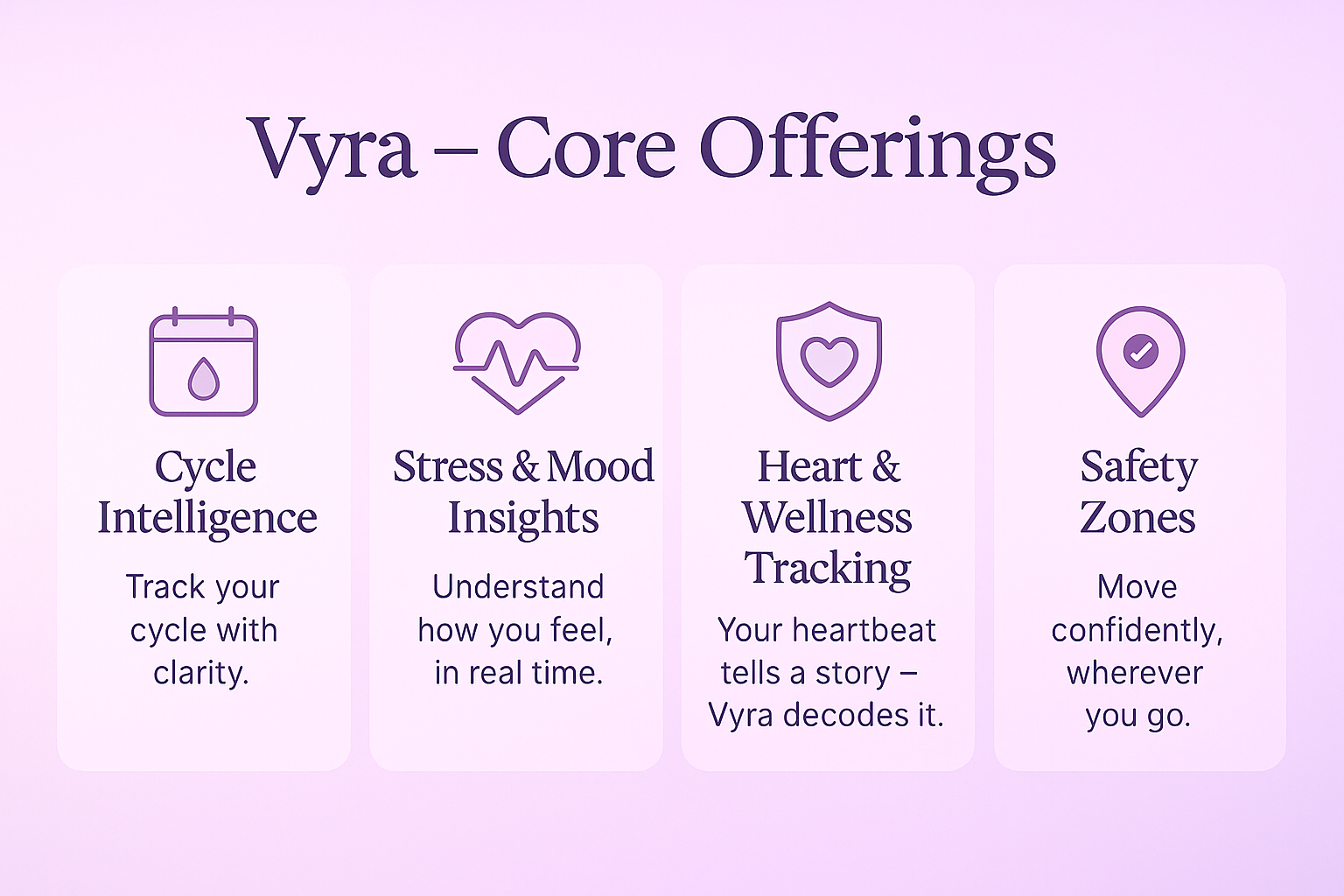 While the Vyra band quietly tracks your daily rhythm, the HerVyra app translates it into: